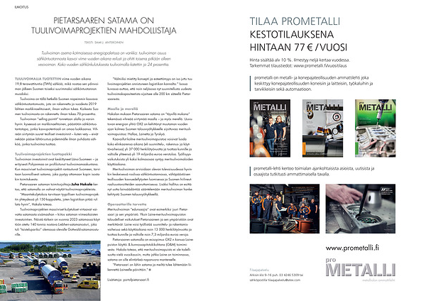 Hinta sisältää alv 10 %. Ilmestyy neljä kertaa vuodessa . Tarkemmat tilaustiedot : www . prometalli . fi / vuositilaus