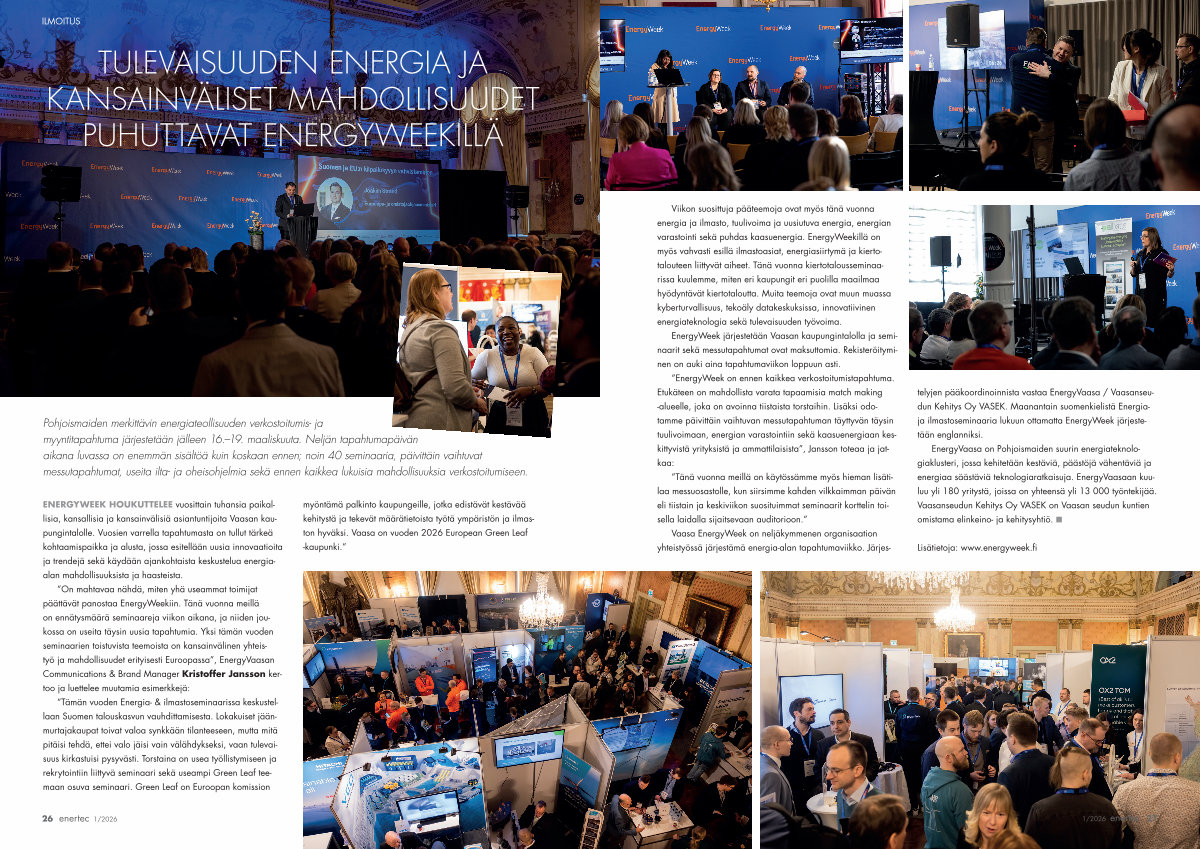 EnergyWeek järjestetään Vaasan kaupungintalolla ja seminaarit sekä messutapahtumat ovat maksuttomia. Rekisteröityminen on auki aina tapahtumaviikon loppuun asti.
