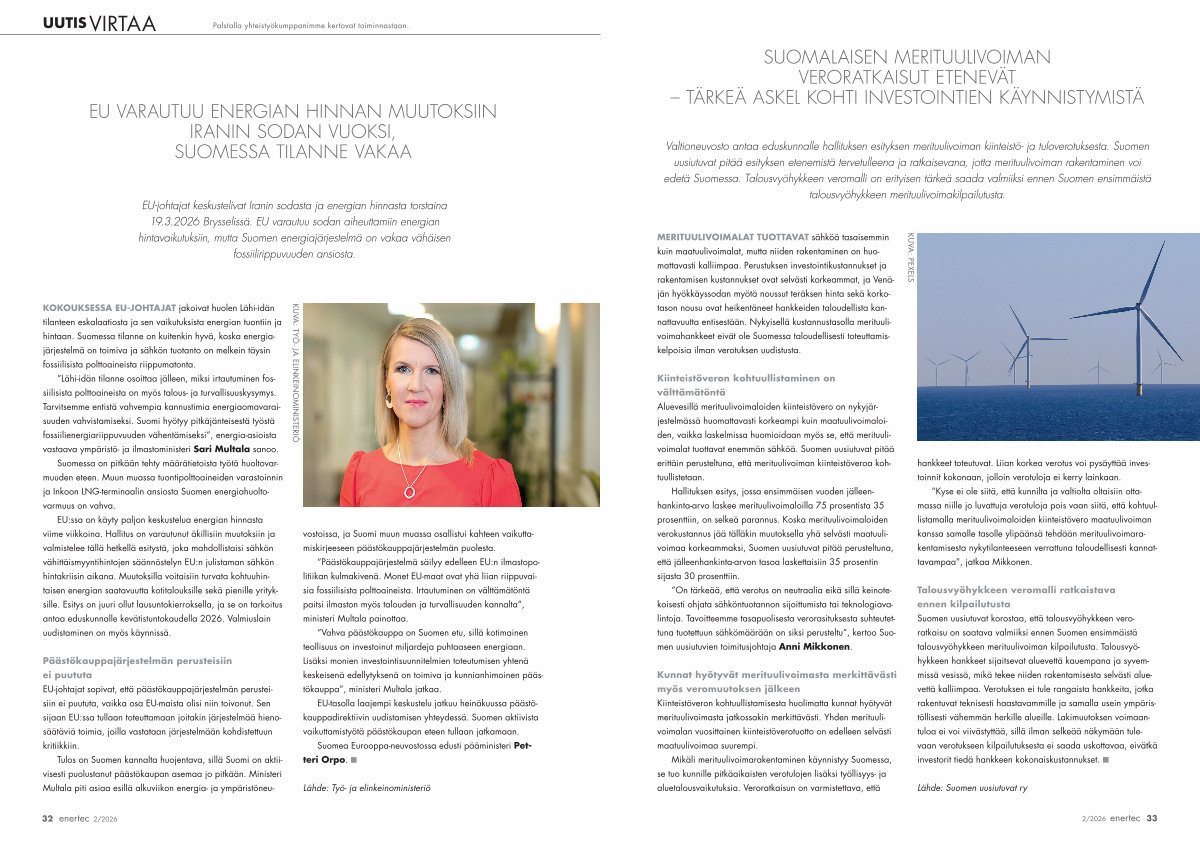 SUOMALAISEN MERITUULIVOIMAN VERORATKAISUT ETENEVÄT – TÄRKEÄ ASKEL KOHTI INVESTOINTIEN KÄYNNISTYMISTÄ