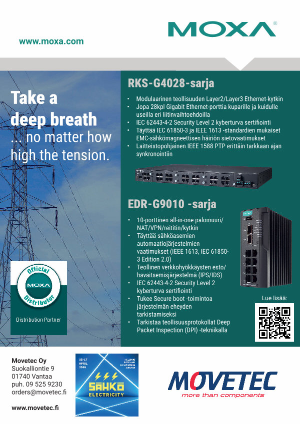 • Täyttää sähköasemien automaatiojärjestelmien vaatimukset( IEEE 1613, IEC 61850- 3 Edition 2.0)