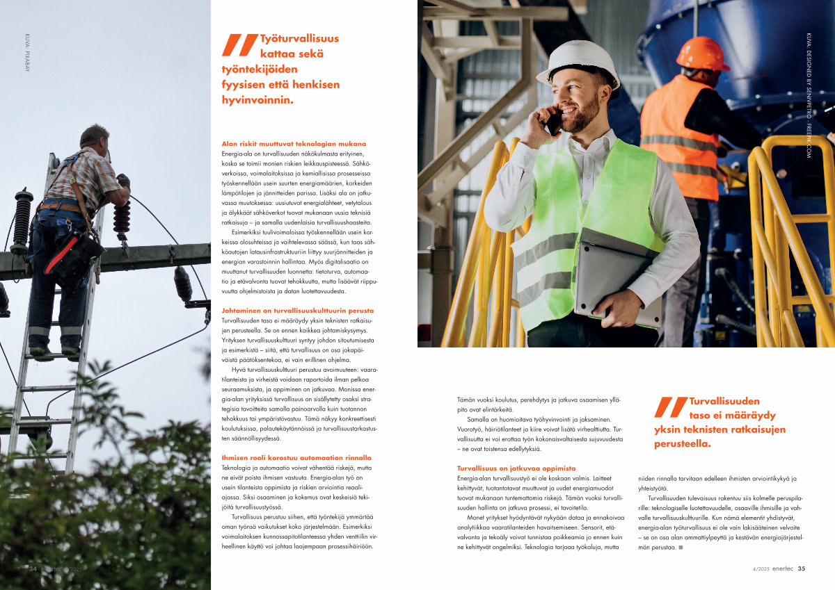 Turvallisuus on jatkuvaa oppimista Energia-alan turvallisuustyö ei ole koskaan valmis. Laitteet kehittyvät, tuotantotavat muuttuvat ja uudet energiamuodot tuovat mukanaan tuntemattomia riskejä. Tämän vuoksi turvallisuuden hallinta on jatkuva prosessi, ei tavoitetila.