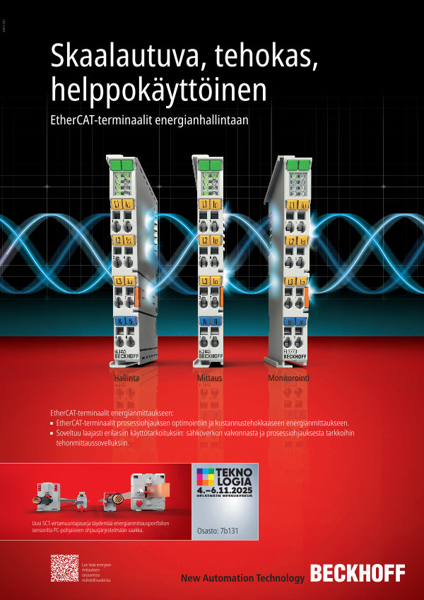EtherCAT-terminaalit energianmittaukseen: EtherCAT-terminaalit prosessiohjauksen optimointiin ja kustannustehokkaaseen energianmittaukseen. Soveltuu laajasti erilaisiin käyttötarkoituksiin: sähköverkon valvonnasta ja prosessiohjauksesta tarkkoihin tehonmittaussovelluksiin.